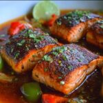 Brown Stew Salmon is a flavorful Caribbean main course featuring tender salmon fillets simmered in a rich, aromatic brown stew sauce made with fresh vegetables, spices, and a hint of heat from Scotch bonnet pepper. This dish offers a perfect balance of savory, spicy, and tangy flavors that brings a taste of Jamaica to your table.