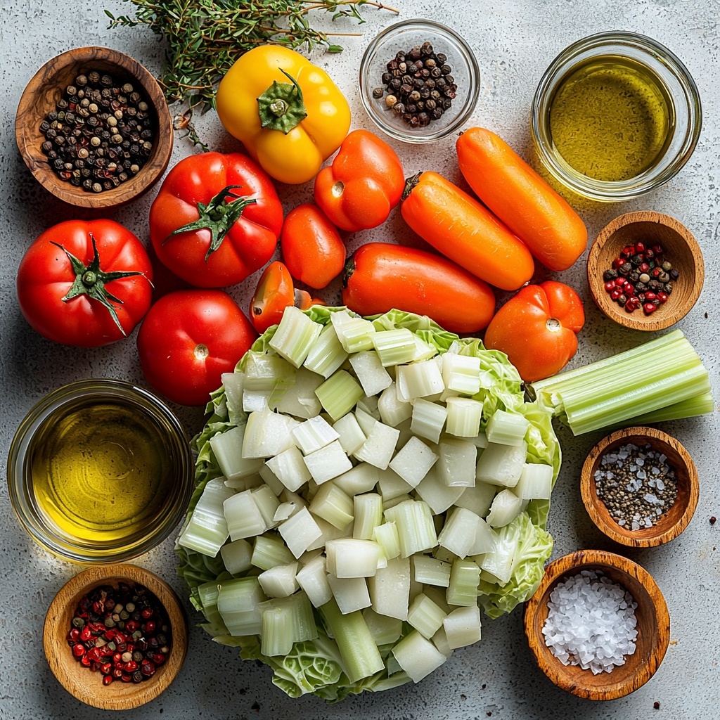 Start by washing all your fresh vegetables thoroughly. Chop the green cabbage into bite-sized pieces, dice the tomatoes and onion, and slice or chop the bell peppers, carrots, celery, and garlic. This prep work ensures every spoonful delivers a harmonious blend of textures and flavors.