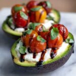 This fresh and vibrant Caprese Stuffed Avocado recipe combines creamy ripe avocados with juicy cherry tomatoes, soft mozzarella, aromatic basil, and a drizzle of balsamic glaze for a quick, healthy, and delicious appetizer or light meal perfect for any occasion.