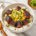 This Caramelized Spam and Eggs Delight is a savory and sweet breakfast favorite that combines crispy, caramel-glazed Spam with fluffy scrambled eggs served over steamed white rice. Enhanced with traditional Japanese furikake, fried garlic, and fresh green onions, this dish offers a perfect balance of salty, sweet, and umami flavors in just 20 minutes, making it a quick and satisfying meal for any time of day.