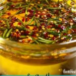 Next, stir in the finely chopped rosemary, minced garlic, crushed red pepper flakes, and Italian seasoning. Each of these adds a unique layer to the taste, making the oil deeply fragrant and inviting.