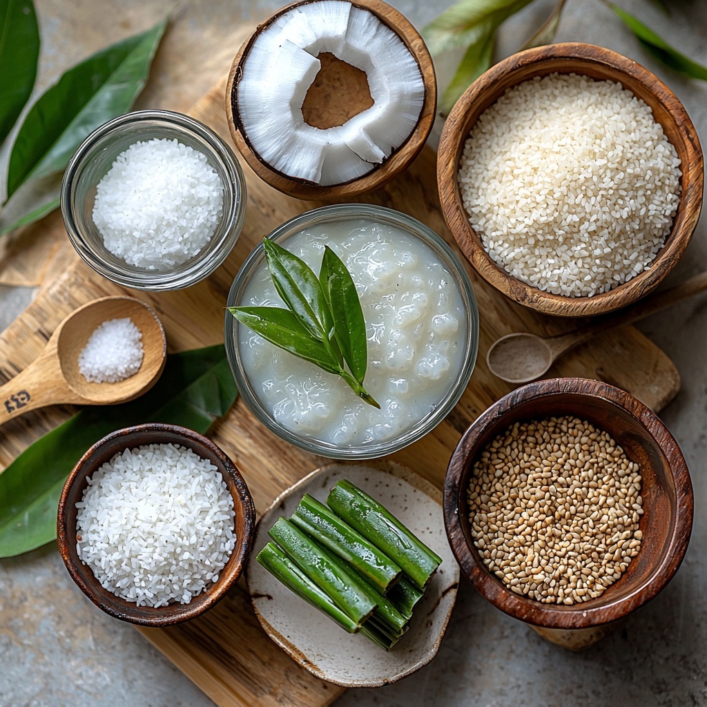 The beauty of this recipe lies in its straightforward ingredients, each playing a vital role in crafting that signature flavor and texture. From the ultra-soft glutinous rice to the fresh pandan leaves, every component is essential for creating a perfectly balanced cake.