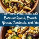 This Fall Harvest Pasta Salad combines roasted butternut squash and Brussels sprouts with sweet cranberries, crunchy pecans, and tangy feta cheese, all tossed in a simple balsamic vinaigrette. Perfect for a vibrant, hearty, and flavorful autumn dish that can be served chilled or at room temperature.