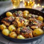 This Garlic Parmesan Chicken and Potatoes one-pan dinner is a flavorful and easy-to-make meal featuring crispy, juicy chicken thighs paired with tender, Parmesan-coated baby potatoes. Baked in the oven, this dish brings together savory garlic, oregano, and a hint of paprika for a comforting family dinner that requires minimal cleanup.