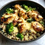 Grilled chicken broccoli bowls with creamy garlic sauce offer a delicious and wholesome meal packed with protein, fresh vegetables, and a rich, flavorful sauce. Perfect for a balanced lunch or dinner, this recipe combines juicy grilled chicken, tender quinoa, and vibrant broccoli, all tied together with a luscious garlic cream sauce.