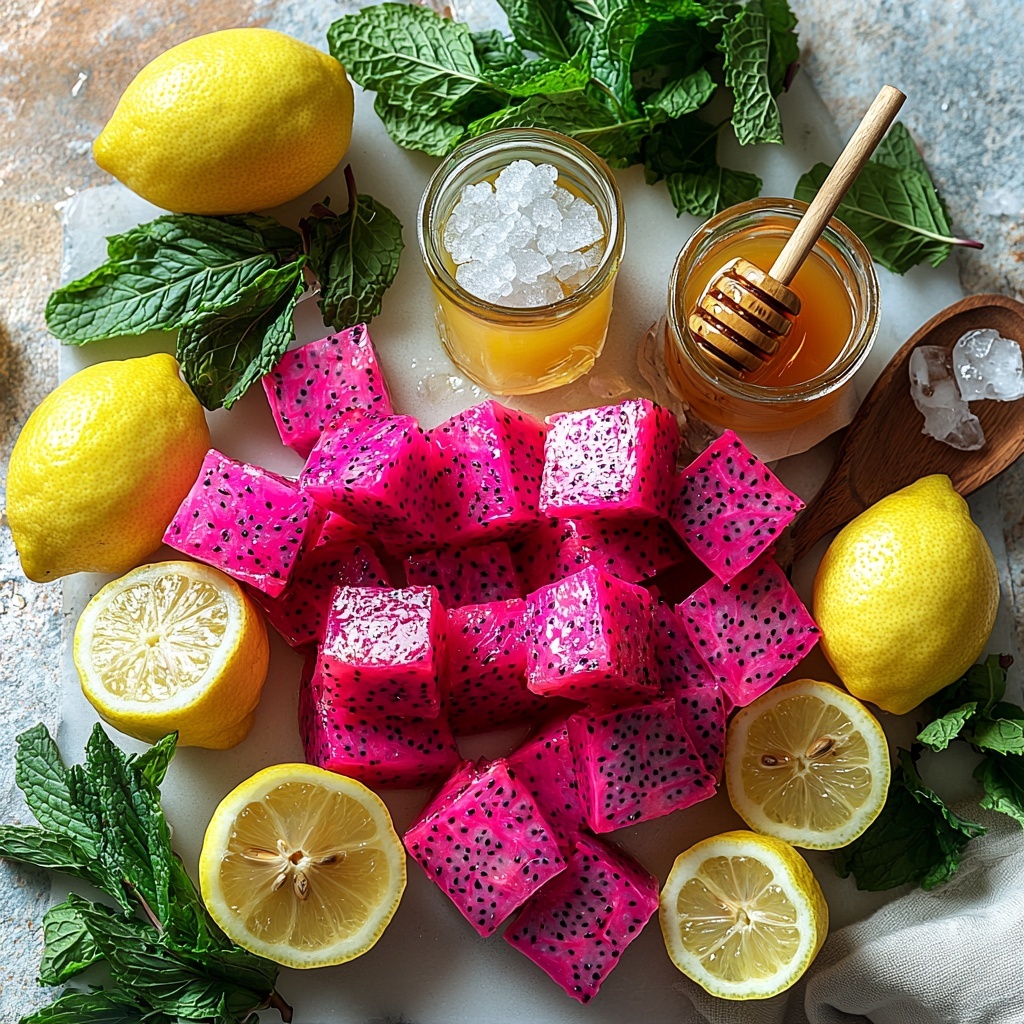 Begin by peeling and chopping your vibrant dragonfruit into small cubes. This juicy fruit is the soul of your lemonade, so picking a ripe one will ensure maximum sweetness and that mesmerizing color that will make your drink truly eye-catching.
