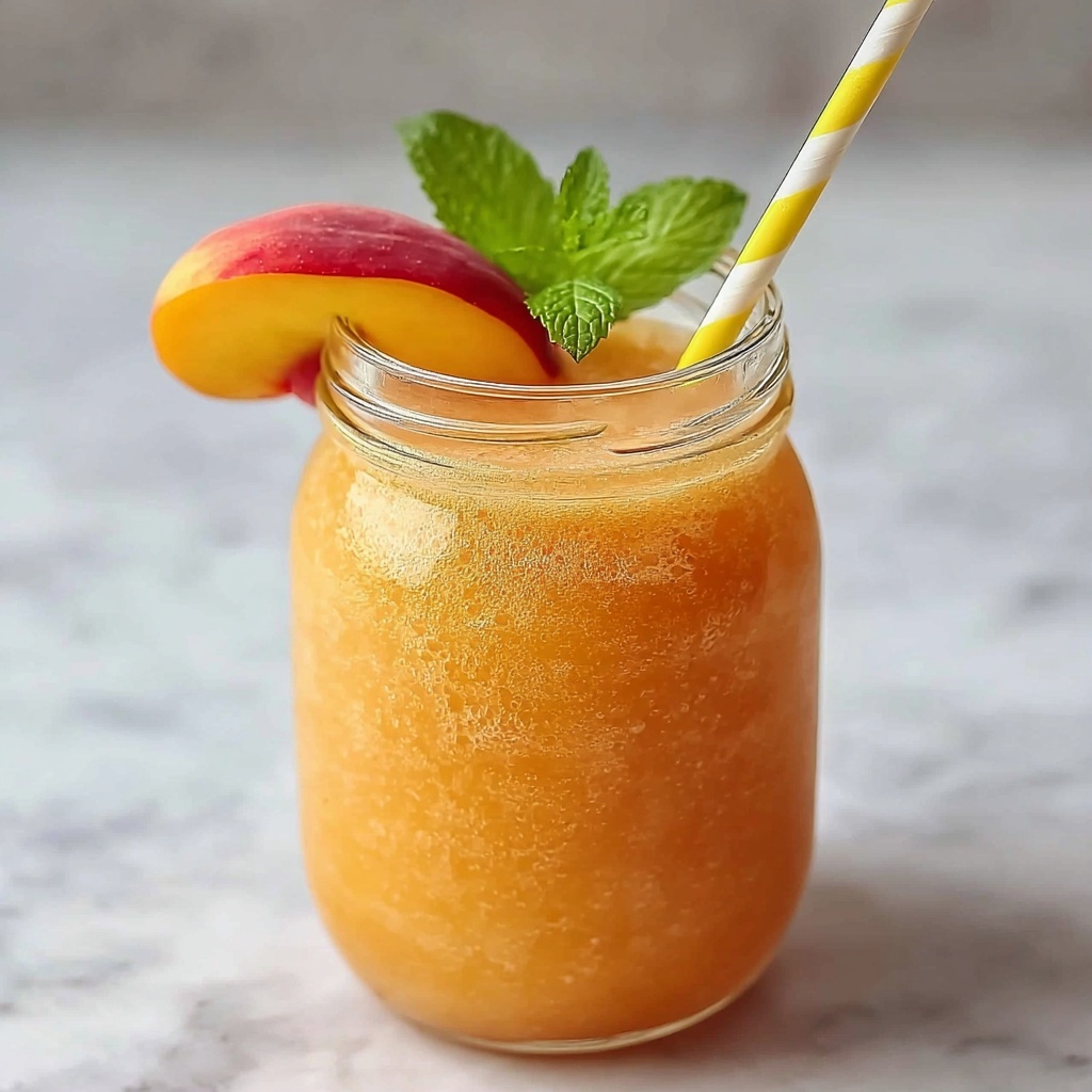 Serve the slush in clear glasses or mason jars to showcase its beautiful peachy color. For parties, fill hollowed-out peaches with the slush for a charming presentation that feels extra special. You can even rim the glasses with sugar or a blend of cinnamon and sugar for a fun twist.