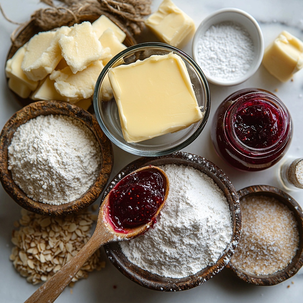 This recipe calls for a handful of simple but essential ingredients that work harmoniously to create the perfect texture, flavor, and appearance. Each component has its role, ensuring that the cookies are buttery, tender, and perfectly sweet with just the right amount of almond crunch and jammy surprise.