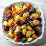 This Roasted Root Vegetables recipe features a hearty mix of sweet potatoes, carrots, and beets, tossed with olive oil, salt, pepper, and fresh rosemary, then oven-roasted to caramelized perfection. Perfect as a comforting side dish, these roots deliver a delicious combination of natural sweetness and savory herbs with a tender interior and crispy edges.