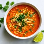 Once the noodles are just right, stir in a generous splash of fresh lime juice and your fragrant chopped cilantro. These additions bring a lively brightness and a fresh finish that rounds out the rich, creamy soup. Now your Thai Red Curry Soup Recipe is ready to be savored!